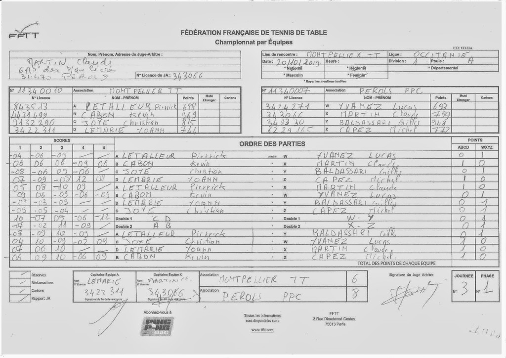 La 3ème journée de la 1ère phase des championnats séniors régional et départemental a eu lieu le 20 octobre 2019(départementales le matin à partir de 9h , régionales l'après-midi à partir de 14h30) : A domicile (1,2,3,6,7,8,9,10) ; à l'extérieur (4,5,11,12).