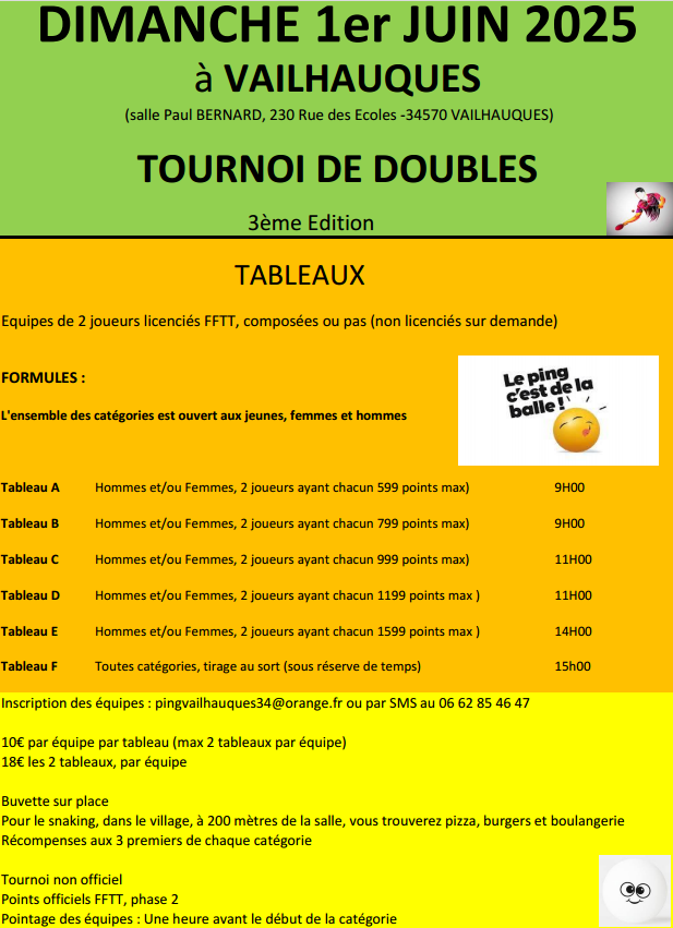3ème TOURNOI HERAULTAIS DE TENNIS DE TABLE EN DOUBLE