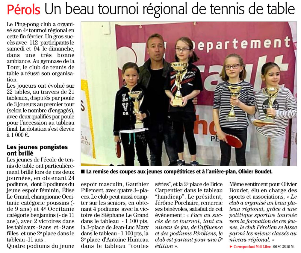 Article Midi Libre 4ème tournoi régional de PPC Pérols
