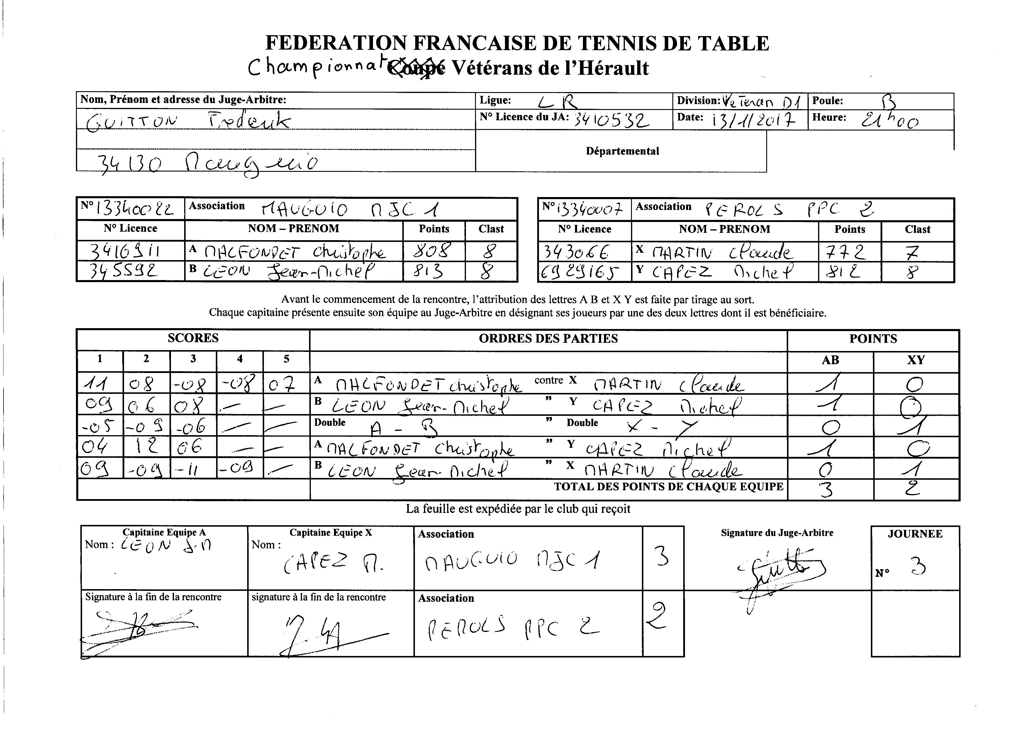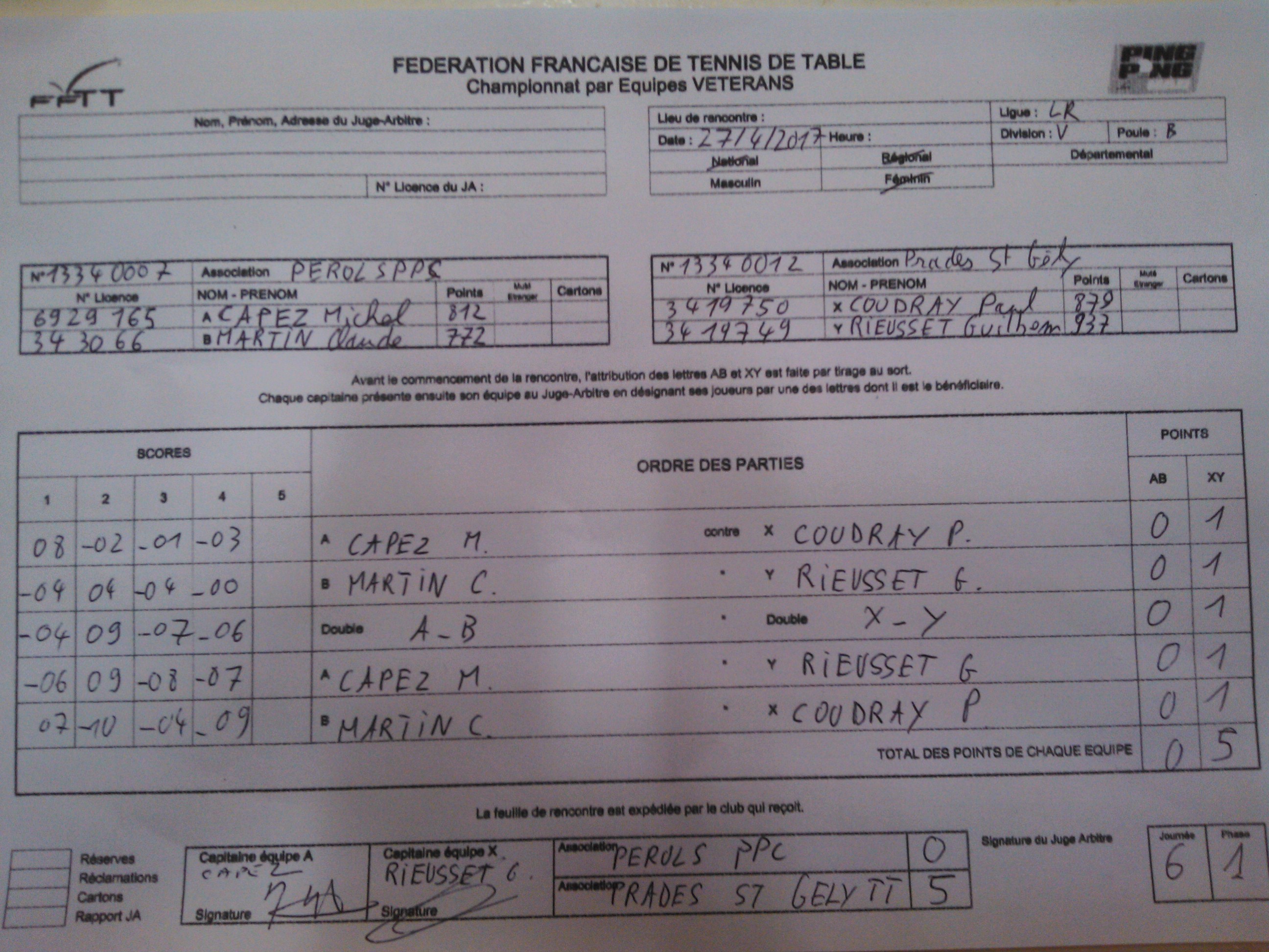 pdf Vétéran poule B J1 - feuille de match Télécharger le document pdf Rija et Michel en déplacement à Castelnau le Lez