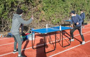 En attendant l'autorisation de relancer l'entraînement en salle, PPCPEROLS sur une idée de Sylvain met en place cet entraînement Jeunes sur le stade attenant au Gymnase.